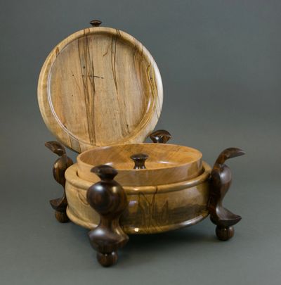 I have a full day demonstration for multi-axis spindle turning. I explain the various shapes that are produced from joining segments on multiple axes. I stress safety in turning, and with specific concerns with multi-axis pieces. Multiple small projects are completed with the intention of showing the process, the watch-outs, design and form.